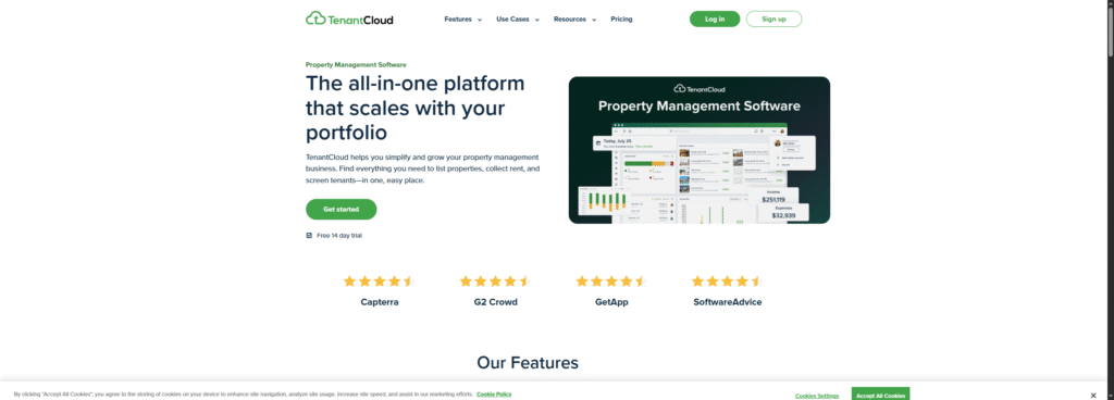 - TenantCloud: Great for budget-conscious DIY landlords, offering online rent, lease organization, maintenance tracking, and growing features.